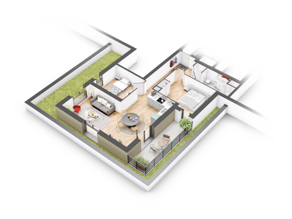 Un atout rare sur le marché ! Chaque appartement dispose d’un balcon, d’une terrasse ou d’un jardin :